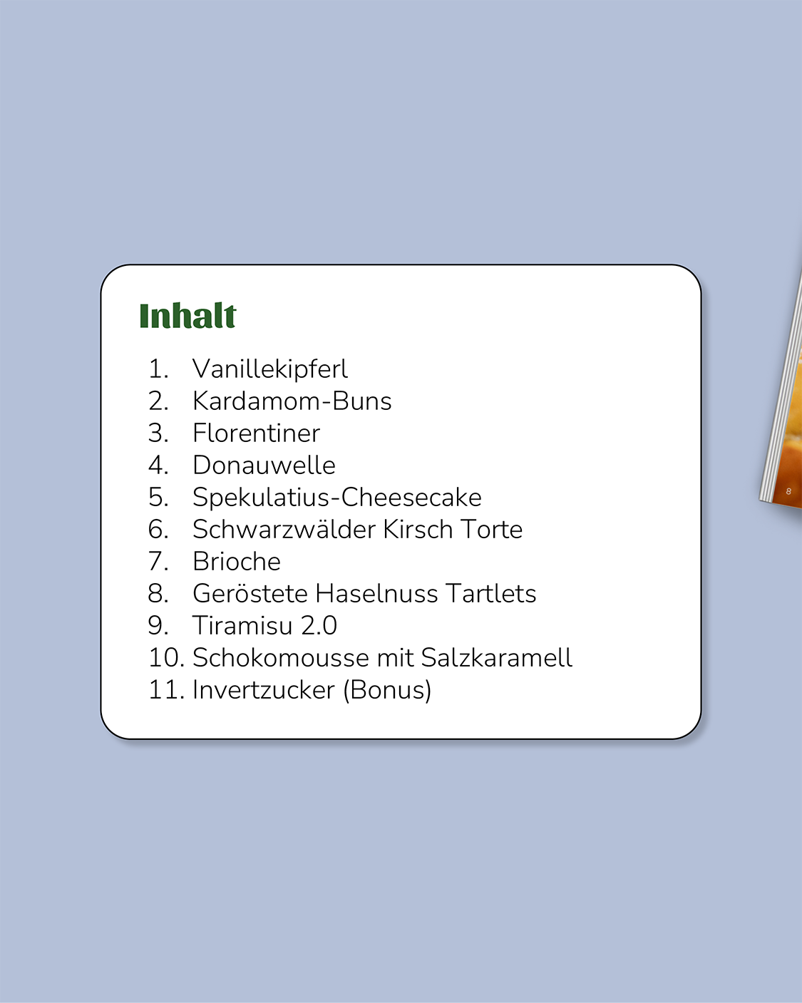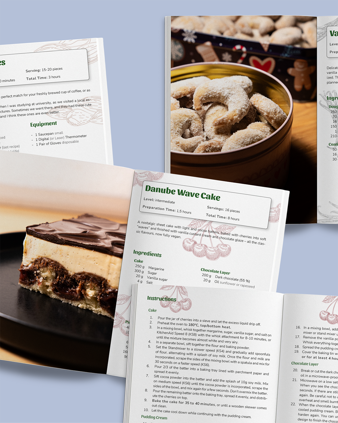 Dieses A5-Booklet bündelt 10 vegane Rezepte an einem Ort – von beeindruckenden Torten bis zu einfachen Keksen für unter der Woche.
