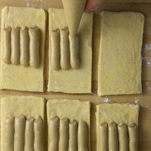 - Fill the hot vanilla custard into a piping bag and let it cool down to room temperature before using.