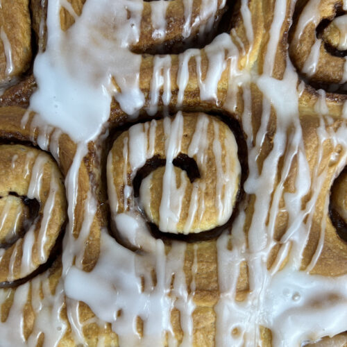 - Brush the hot Cinnamon Rolls with the glaze.